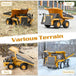 Multifunctional Alloy Remote Control Excavator. It preforms just like the real thing: fluid multi-directional movements, auto-rise and -drop bed, flexible one-click demo, mute-able sound, cool front headlight and so on. Fill the steel dump bed, drive it to its destination, and use the working dump bed to unload it! Our Construction Toy can be driven in sand, grass, mud betting, which can add a lot of fun