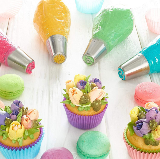 These tips save you time decorating and help you avoid cake crumbs getting into your icing. A single squeeze on your icing bag(non included), it will produce frosting from the decoration tip and you can create an entire gorgeous flower bud in full bloom.