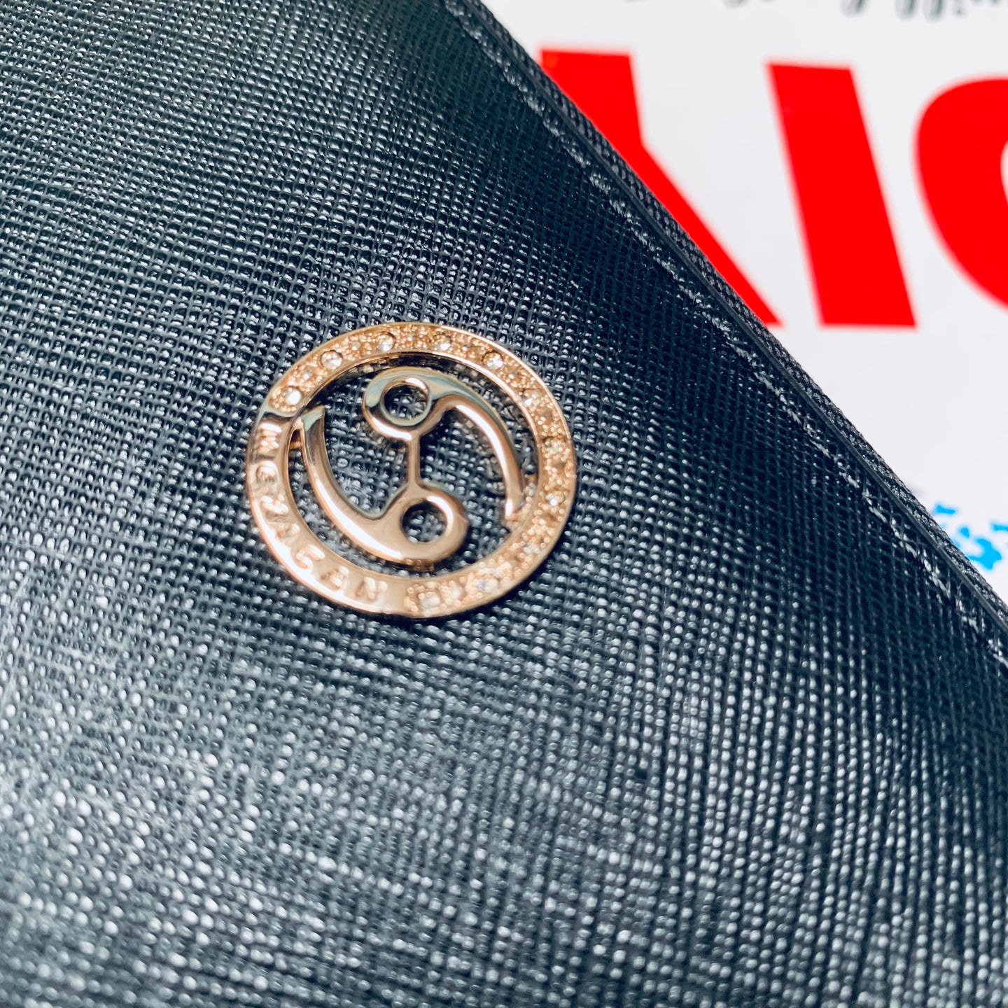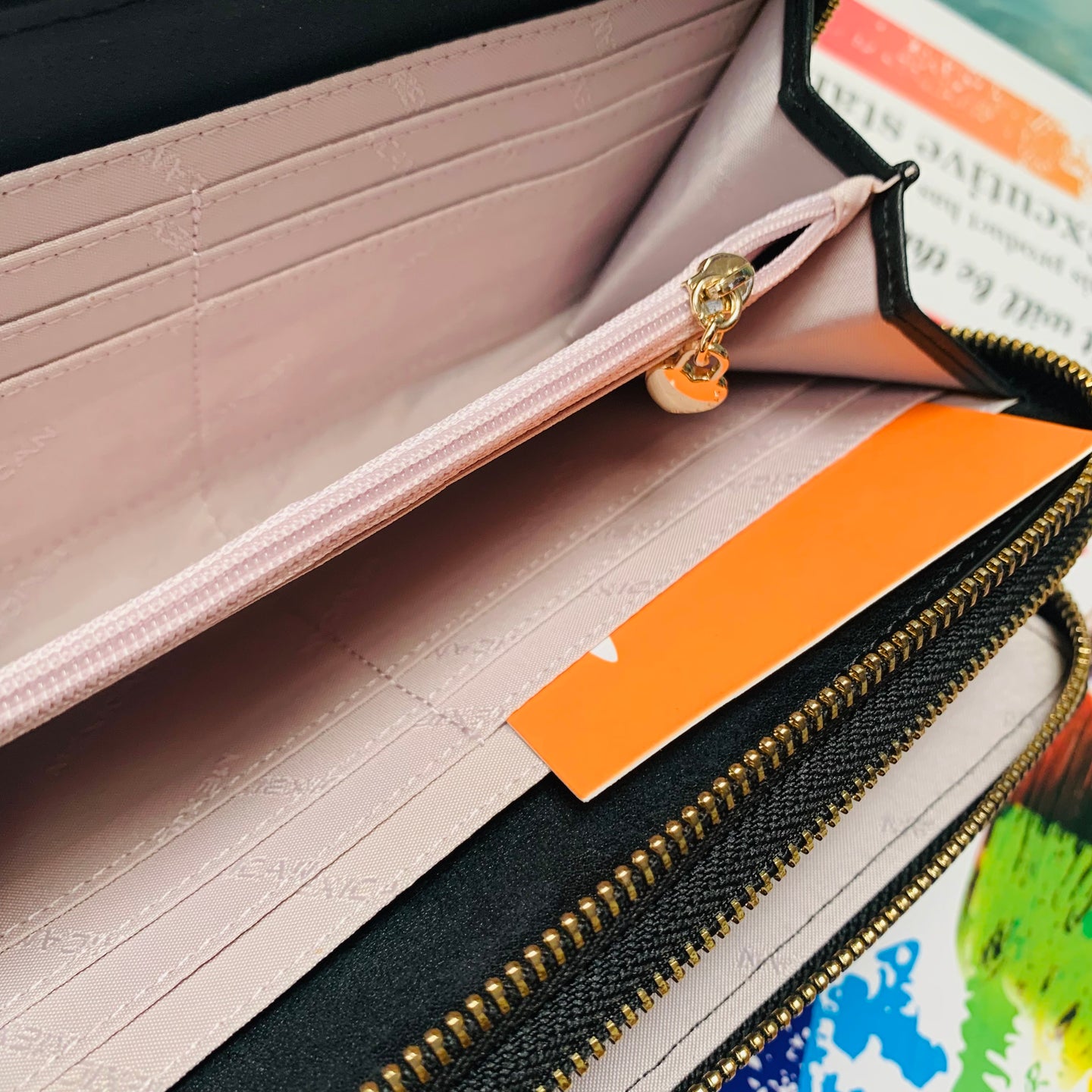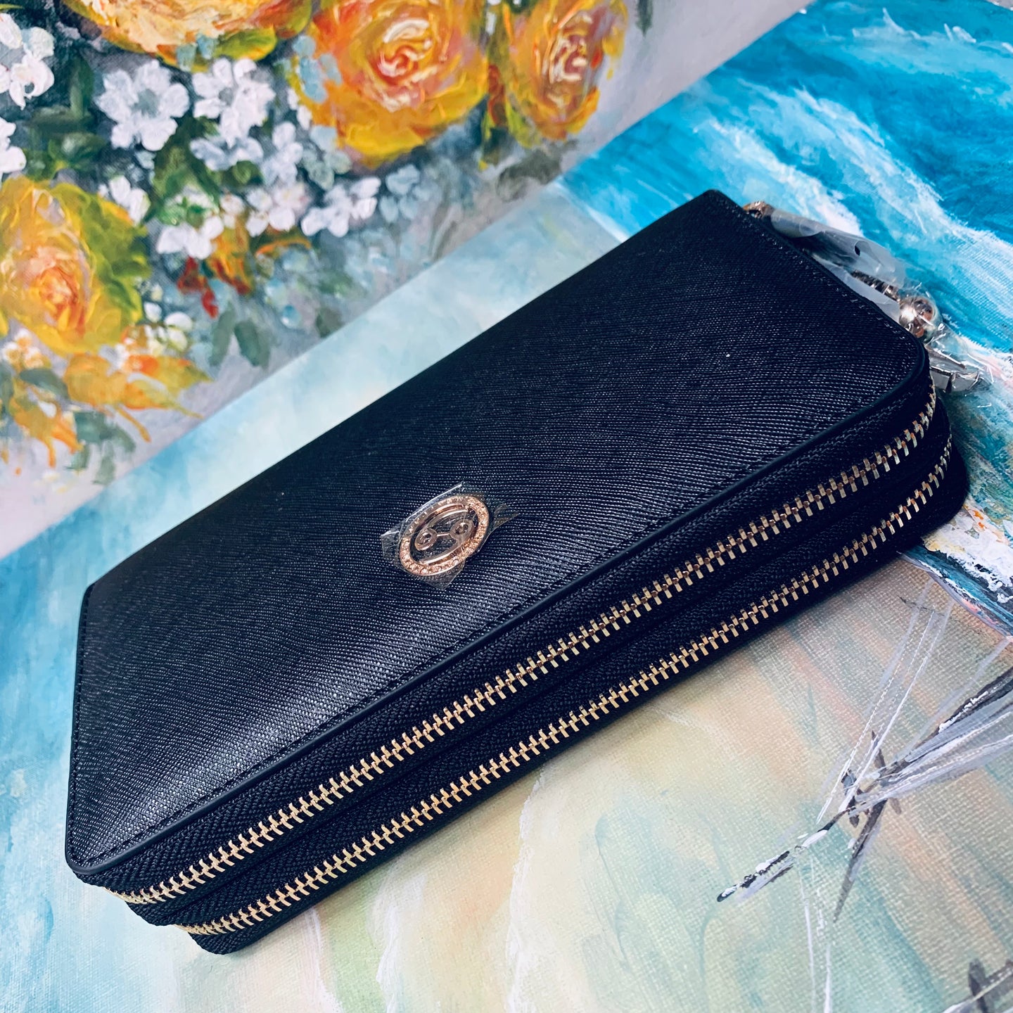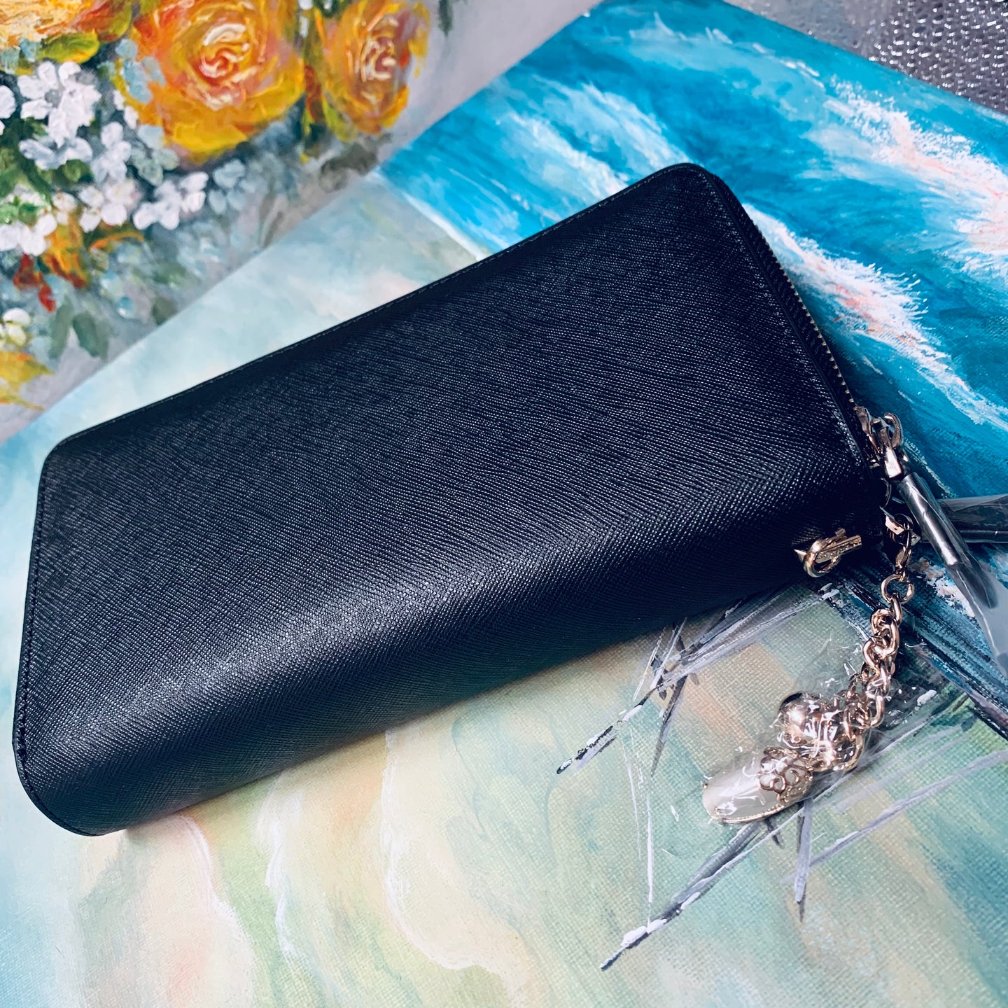 *it has 12 card slots, 4 compartments, 1 zipper pocket, and 1 removable leather wristlet strap.
