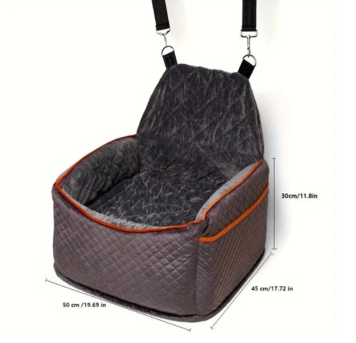 Pet car seats typically come with a harness to secure the seat to the car seat and a tether to secure your pet.