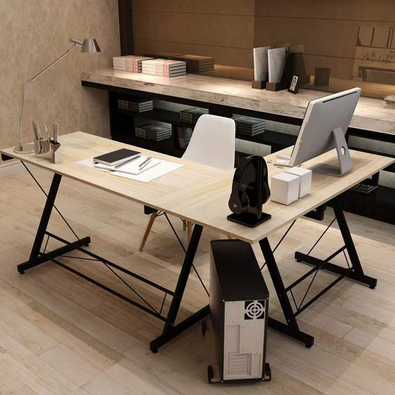 The L shaped desk is constructed by high-quality P2 Mdf Board & Metal Frame. The desk frame is made of heavy-duty powder-coated steel which ensures stability and durability, 1.2" by 0.6" bar width strong enough to support heavy duty parcels.