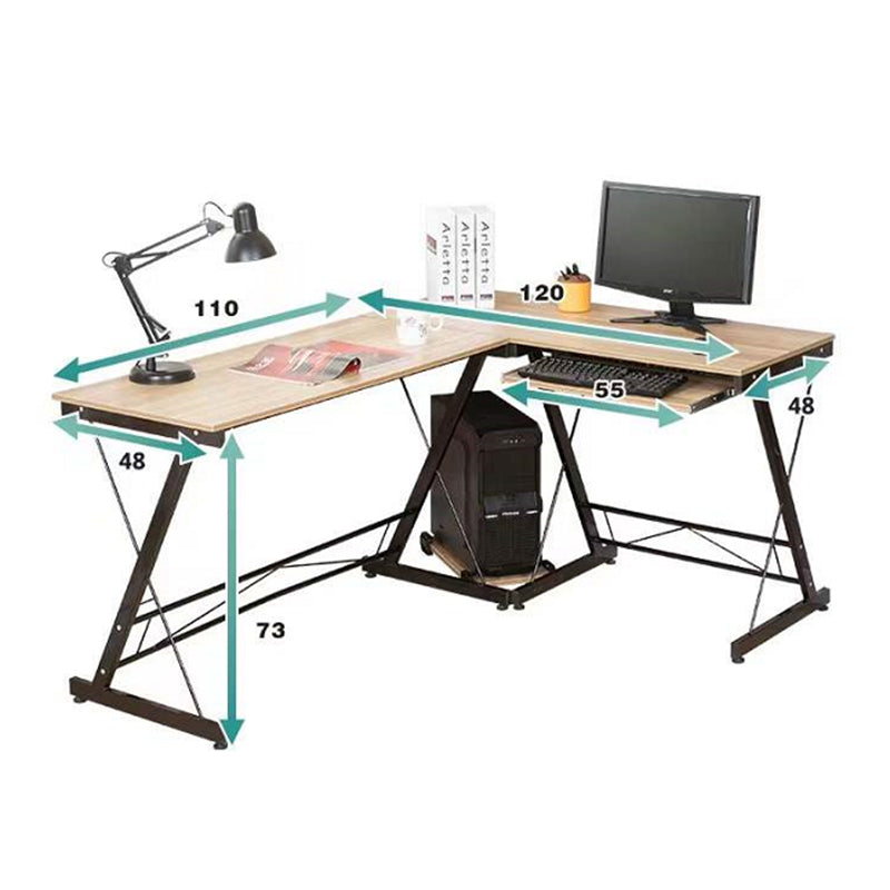 158cm L*120cm D double desktop, both sides of this l shaped computer desk are the same length, easy switch of the two sides as your habit, it can maximize the daily working, gaming and reading enjoyment. Desk Height 73cm, plenty of legroom for rest and storage. Adjustable leveling foot pads are included to keep the desk stable even on an uneven floor.