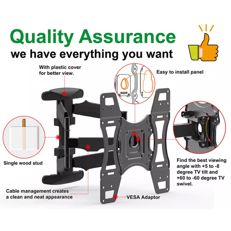 The long arm TV wall mount is suitable for most 32-70 inch TVs with VESA size from 100x100mm to 400x400mm weighing up to 100 lbs. This full motion tv mount is exactly what you need for a heavy & large TV.