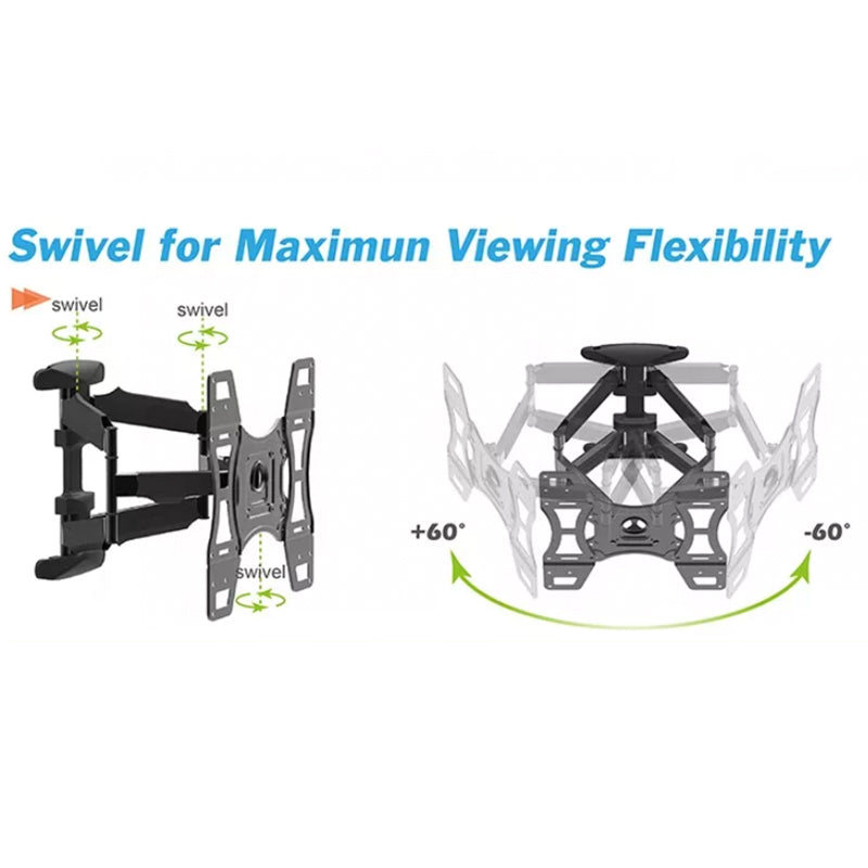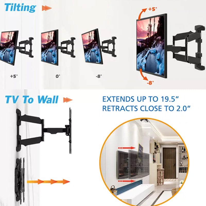 Want to install your TV at the corner but concerned about the flexibility? This extra long extension tv wall mount can extend 491mm for more viewing positions and retract 49mm to wall for saving space. The flexible design makes the best use of the space of the corner.