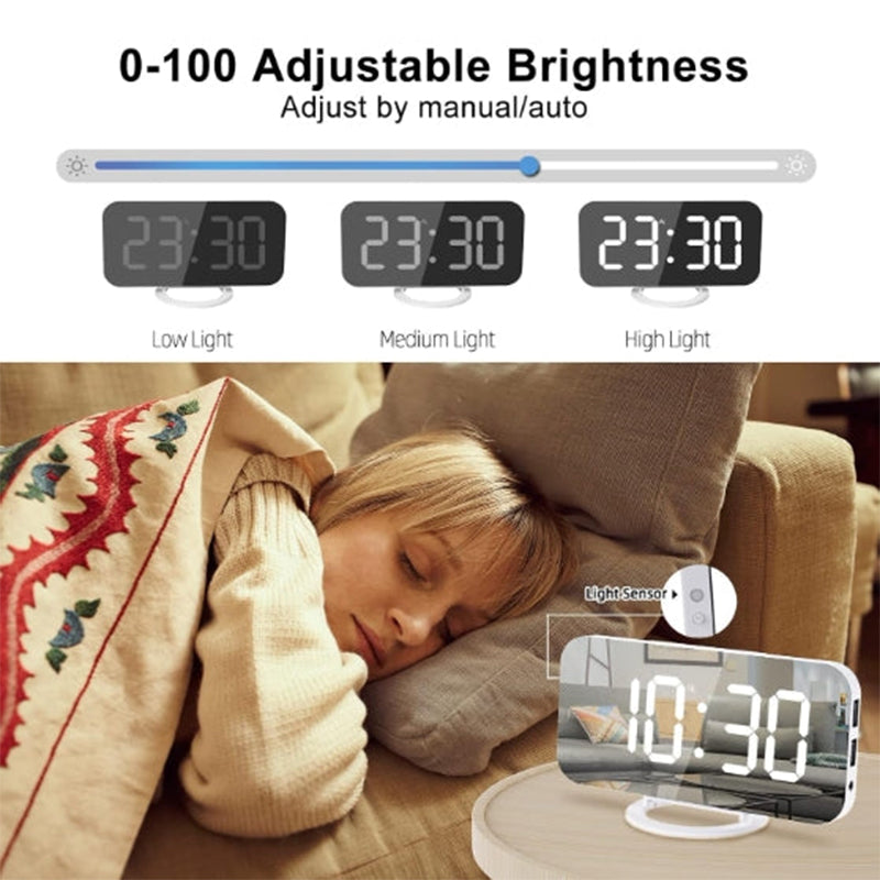 Dual USB Charging and Plug in Digital Alarm Clock:The digital clock equipped with 2 usb charging ports,you can charge your phone,pad and other devices safely and conveniently.