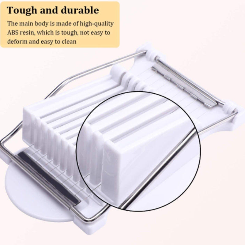Designed with 10 cutting stainless steel wire, Easily cut 11 slices at a time, all equal in size, for a nice presentation and even cooking.