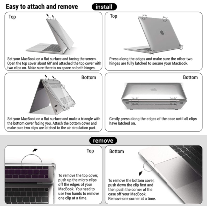 Access to all Ports: Case Design lets you Open/Close your MacBook all the way and Access to all Ports.*Crafted with vent slots to ensure proper heat dissipation.