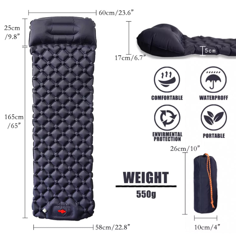 1.No additional Inflate bags are required for this mattress, you can Inflate it within 30seconds with the pressure of hands or feet. This makes it easier to carry and inflate.