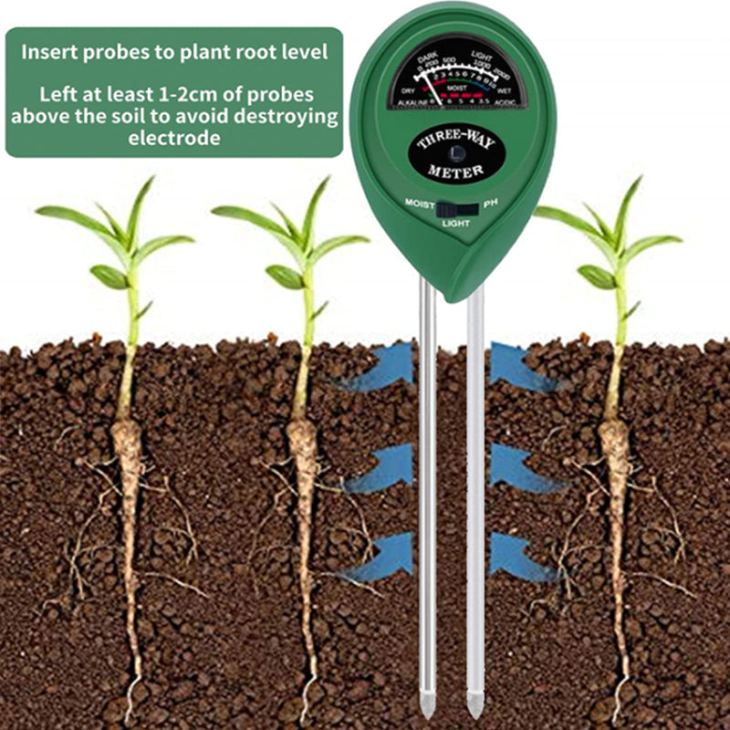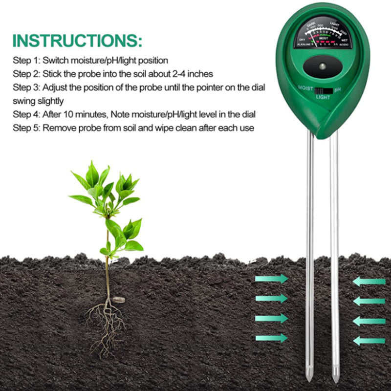 3-in-1 FUNCTION: This specially designed soil test kit can test soil moisture, pH value and sunlight level of plants , quickly helps you to know the soil condition and do adjustment for better plants care.