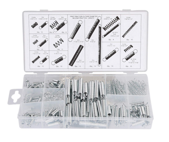 200 Piece Spring Assortment Set Zinc Plated Compression and Extension