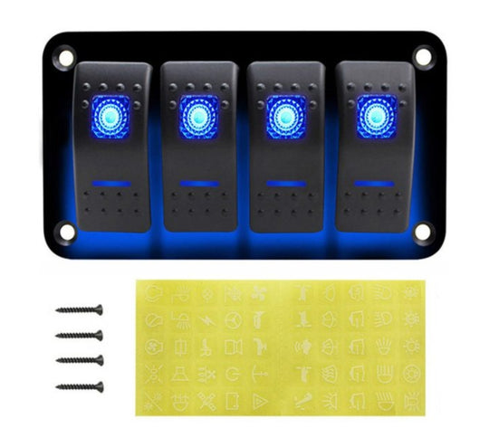 4 Gang Aluminum Rocker Switch Panel Toggle Dash 5 Pin ON/Off