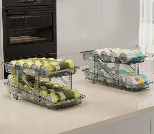 2PC Infinite Telescopic Beverage Storage Box, Two-Tier Automatic Rolling Soda Can Storage Organizer