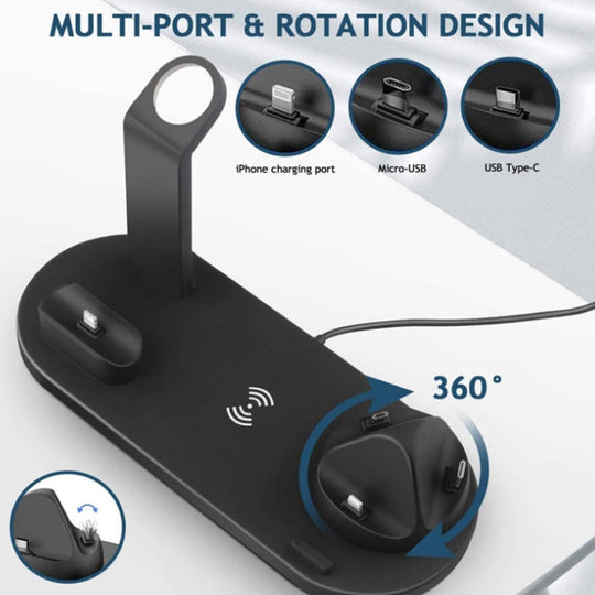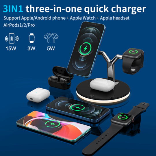 360° rotatable stand charger, iPhone/micro/Type-C three-in-one stand charger, wireless fast charge, smart watch charging stand, and wireless headphone charging base all-in-one. Different mobile phones correspond to different charging interfaces. Fast Charging Stand Compatible for iPhone 15/14/13/12/11/X/XS/XR/XsMax/8...Regular price $29.99 -