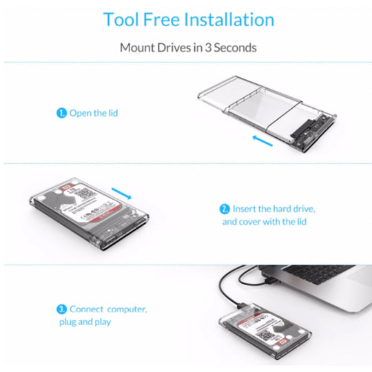 HDD Enclosure 2.5 inch Transparent SATA to USB 3.0 SSD Adapter