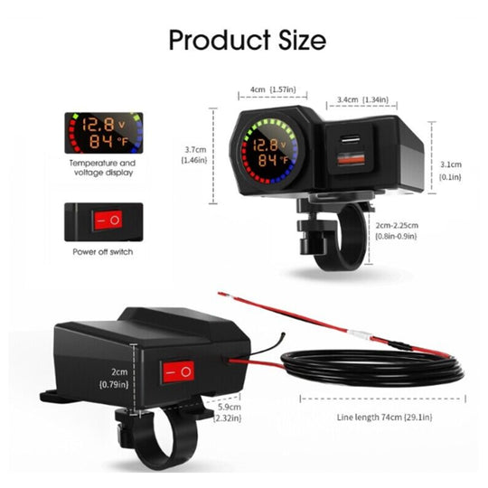 Dual USB PD Motorcycle Phone Charger LED Voltmeter Temperature for HandlebarFeatures: 3 in 1 function, including charger、thermometer voltmeter, save space and easy to use.Red digital voltmeter as a battery tester for checking the state of your...Regular price $31.99 -