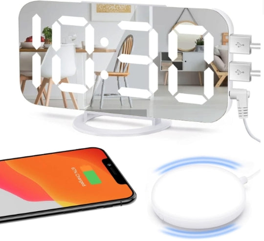 Loud Digital Alarm Clock with Bed Shaker,2 USB Charger, Adjustable LED Light