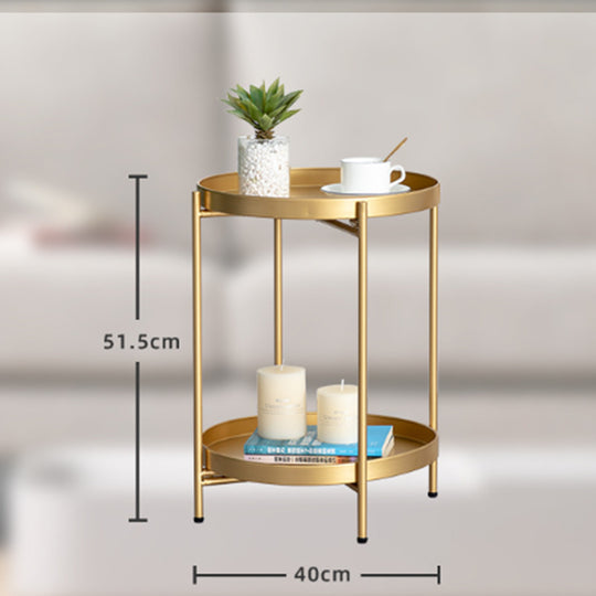 Folding End Table 2-Tier Metal Round Side Table with Removable Tray Black+Blue