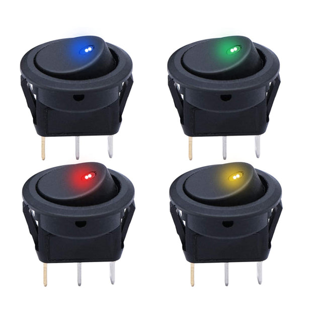12 pcs 12V Round Rocker Switch Lighted SPST Switch Blue LED Light up 20A 3