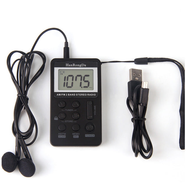 Pocket AM FM 2 Band Stereo Radio Mini DSP Digital Tuning Receiver with Earphone
