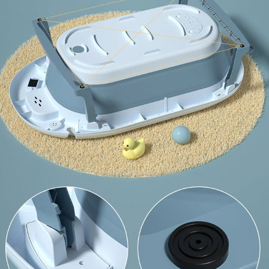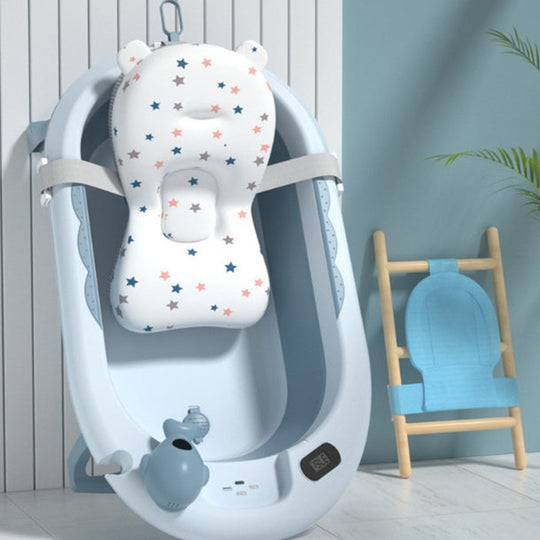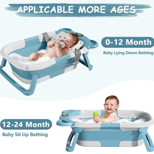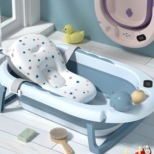 Collapsible Baby Bathtub with Real-time Temp Monitor+Floating Cushion +Net
