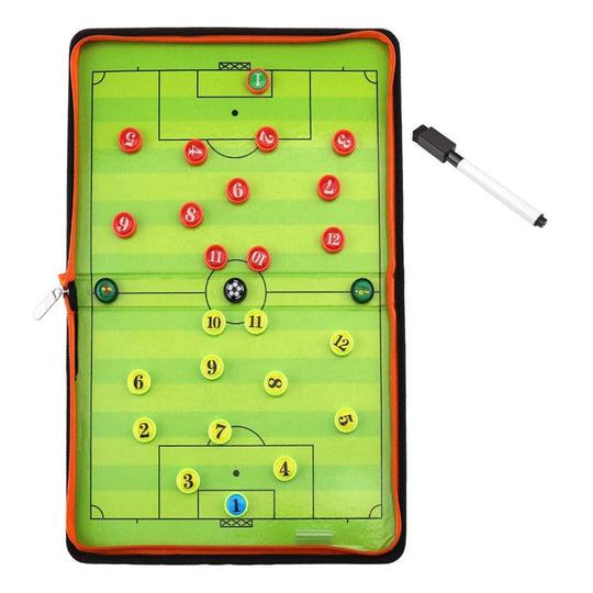 Contains 27 magnets, 24 for soccer player, 1 for ball, 1 for centre referee and 1 for sideline referees. Plus it includes a dry erase marker as well Soccer coaching board made of microfiber leather, waterproof,...Regular price $23.99