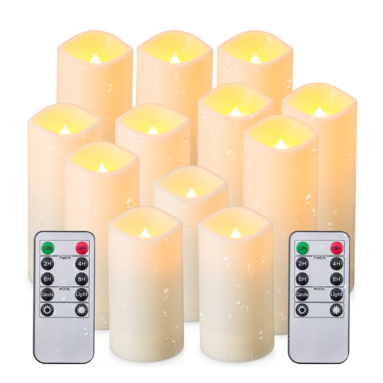 12pcs Flameless LED Candles Outdoor Indoor Battery Operated with 2pcs Remotes