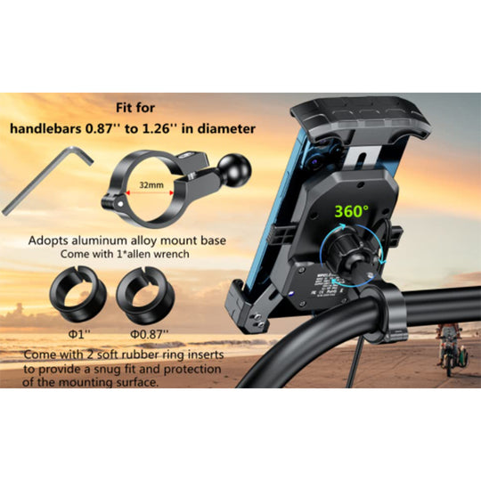 Motorcycle Phone Mount 15W Wireless & USB C 20W Fast Charger