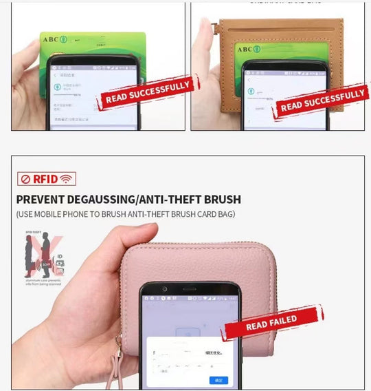 RFID Blocking Slim Card Case PU Leather Zipper Card Organizer