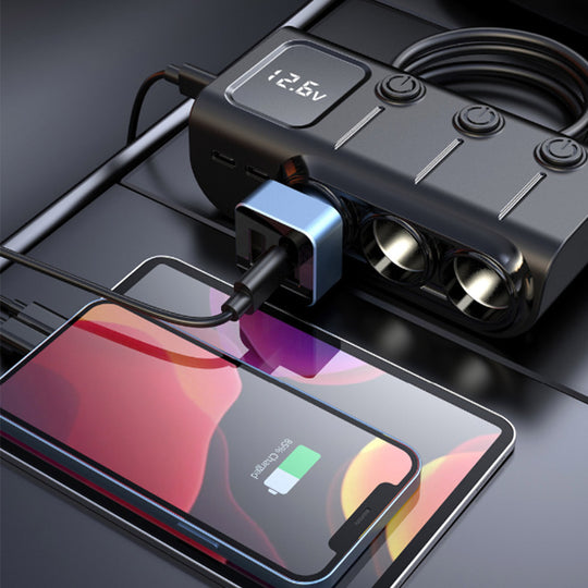 Car cigarette lighter 3-port USB independent switch PD smart fast charging 120W