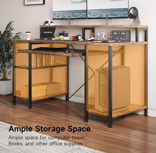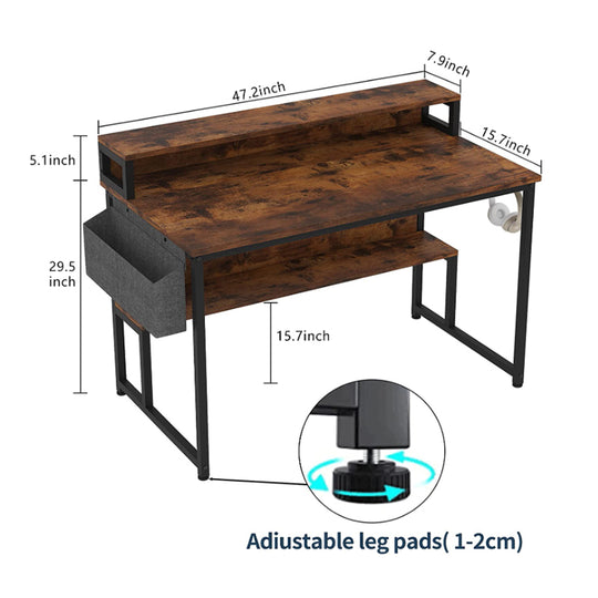 Computer Desk, Home Office Desk with Storage Shelf and Bookshelf Storage Bag