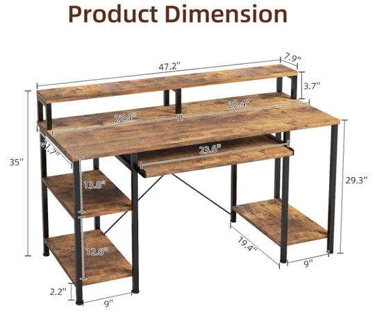 The computer desk with top shelves and the bottom bookshelf. It is a suitable workspace for your home office activities and provides ample space for computer, monitor, printer, writing, study, and other home office activities. The...Regular price $215.99 -