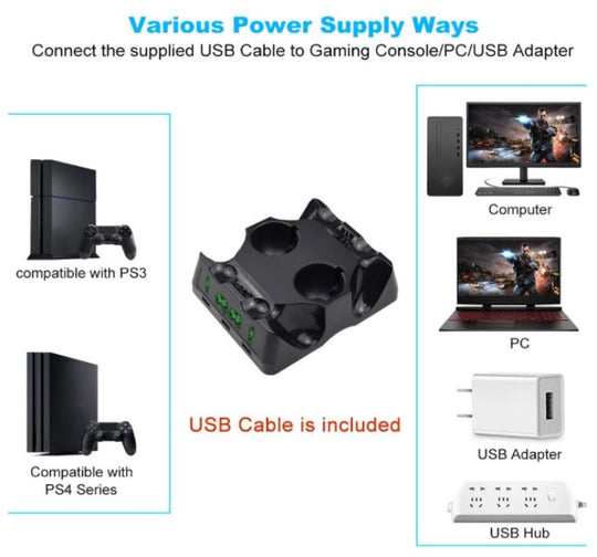 Loading for two PS controllers and two PS VR Move Motion Simultaneously. There are also three USB ports. Red means loading, green means fully loaded, which tells you any one controller is finished. just put your...Regular price $23.99 -