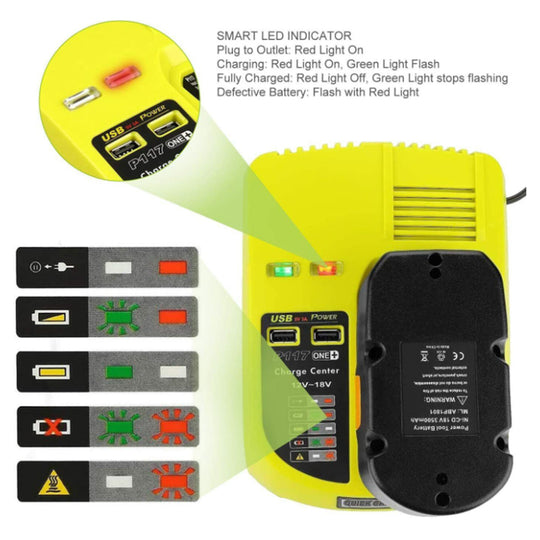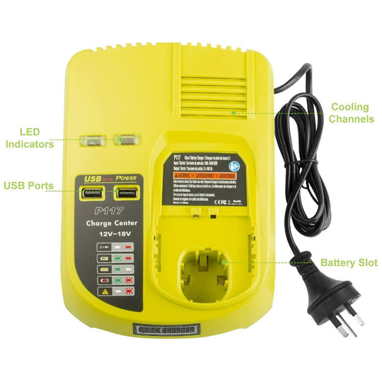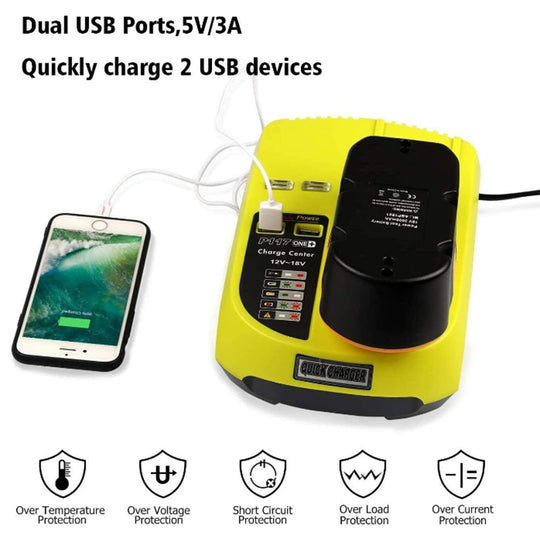 Compatible with Li-ion,Ni-MH & Ni-Cd batteries.Model No.: P117Condition: 100% Brand newItem Weight: 750gInput: AC 110V - 240VOutput Voltage: 12V - 18V;Output Current: Li-ion 3A; Ni-CD / Ni-MH 2ACompatible Model:For Ryobi 12V and 18V MAX One Plus...Regular price $64.99 -
