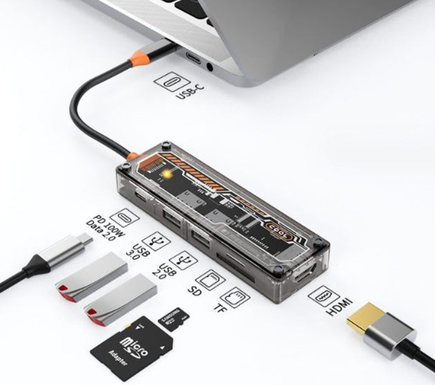 6-IN-1 USB-C Hub Docking Station Transparent Mecha Series