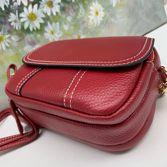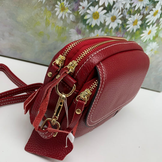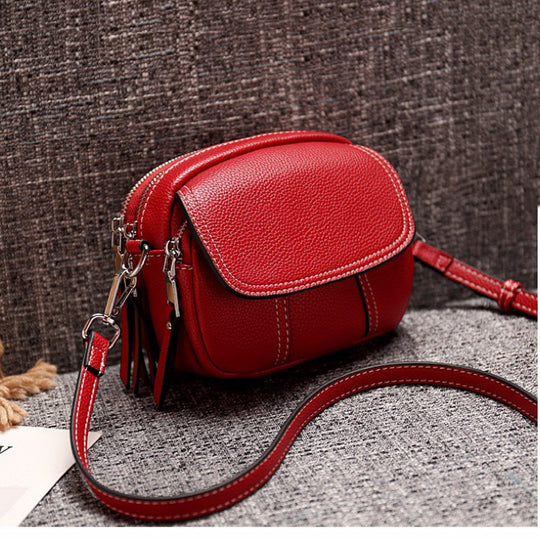 Triple Zipper Crossbody Leather Bag Cellphone Bag