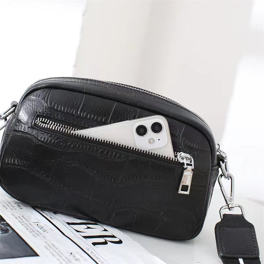 Triple Zipper Crossbody Leather Bag Cellphone Bag