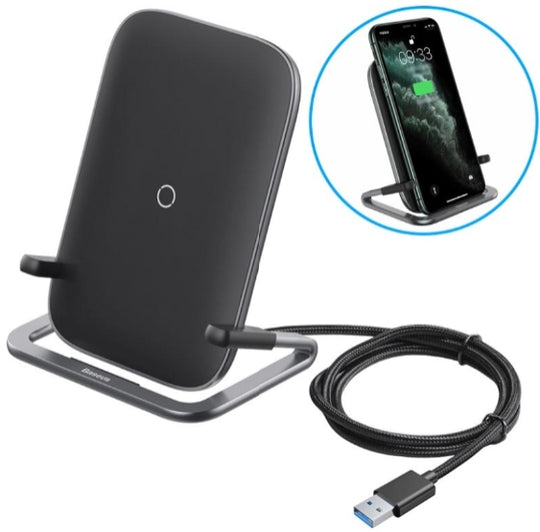 Baseus Rib Horizontal and Vertical Holder Wireless Charger Stand 15W Black
