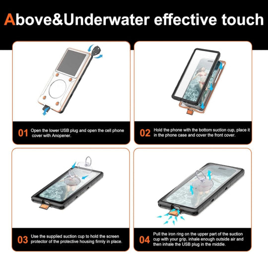 IPX8 Professional Waterproof Diving Case Cover for iPhone/Samsung/Google/Moto -Universal Black