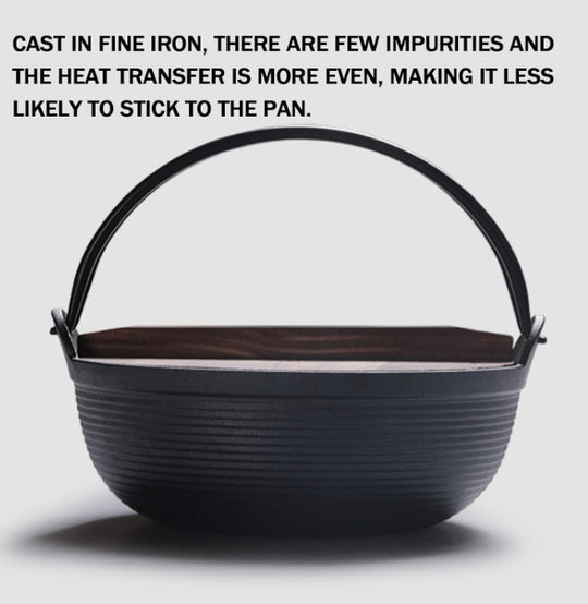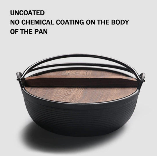 25cm stew pot Japanese Style Sukiyaki Tetsu Nabe Pot with Wooden Lid and Double Handle Cast Iron Pot