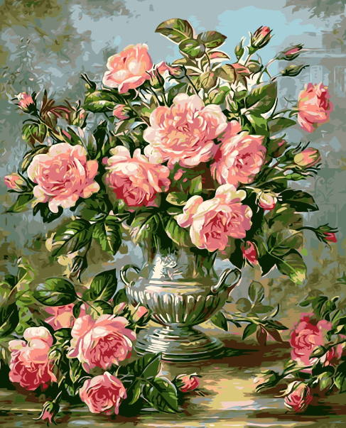 Paint by Number Kit on Canvas 40x50 cm (with wooden frame) Pink Roses