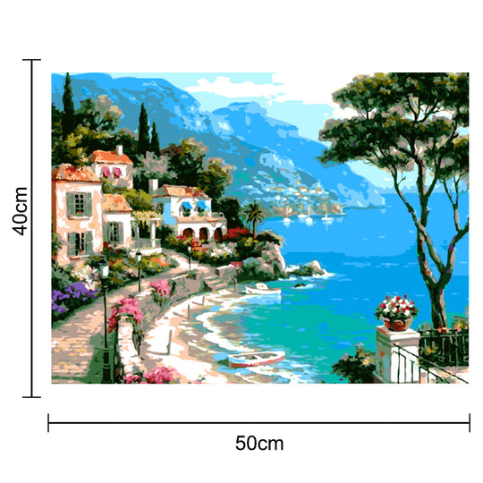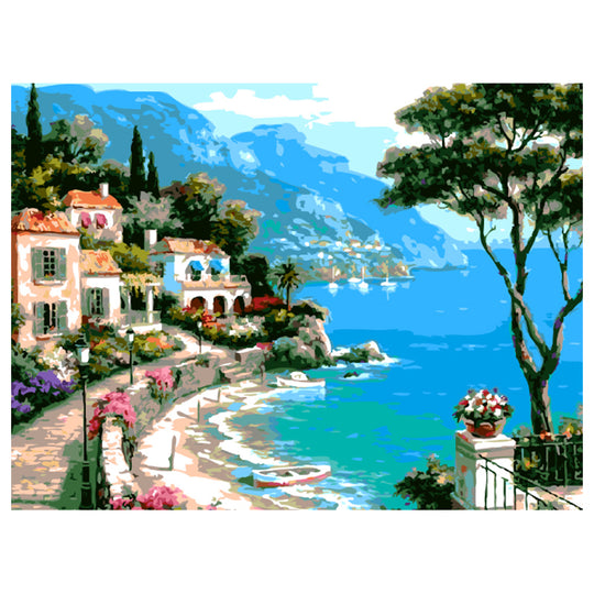 Paint by Number Kit on Canvas 40x50 cm (with wooden frame) Castle by Sea