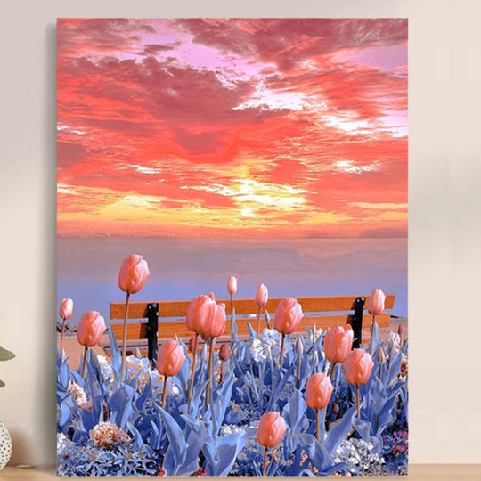Paint by Number Kit on Canvas 40x50 cm (with wooden frame) glowing tulips