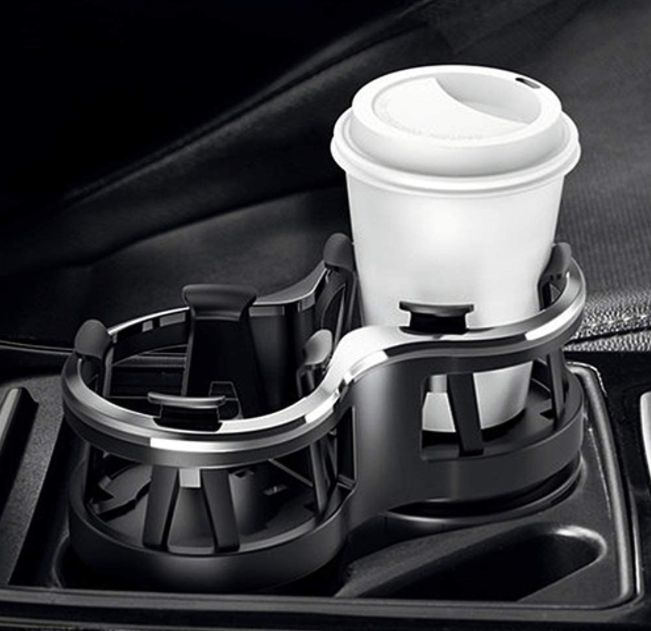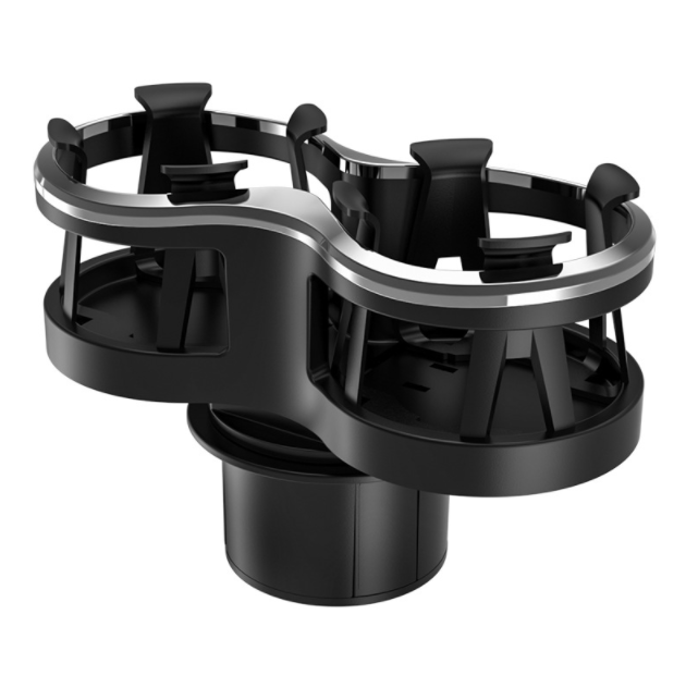 Universal Detachable Water Bottle Holder for Cars. The bracket is equipped with two storage cups by adjusting the rotatable base, small in size and large in capacity, for the purpose of saving car space, and can hold two drinks at the same time. Can hold cup, beverage bottle, cans, car ashtray