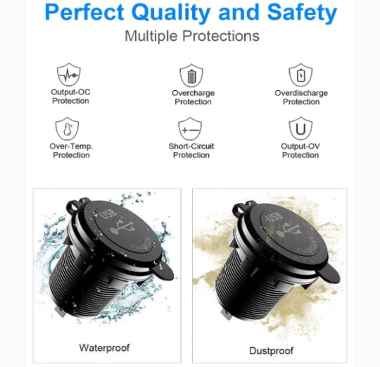Quick Charge 3.0 Dual USB Power Outlet with Touch Switch Waterproof 12V/24V