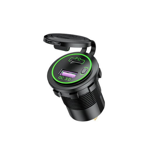PD Type C USB Car Charger Socket and QC 3.0 Quick Charger 12V/24V Green