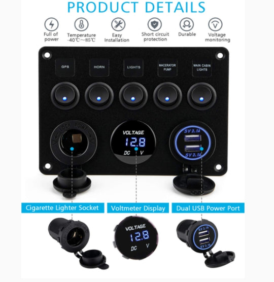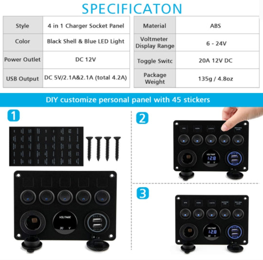 Multi-Functional Panel: Integrated with dual USB port (2.1A and 2.1A), digital voltage display, blue LED light indicator, waterproof board, 12V DC power socket and 5 on / off rocker switches, this 12V/24V electrical panel can meet...Regular price $54.99 -