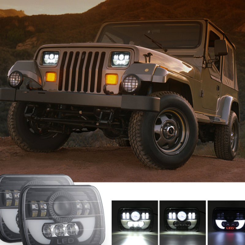 Package includes 2pcs 5" x 7" 6x7 inch Rectangular LED Headlights for Jeep Wrangler Cherokee XJ Trucks 4X4 Offroad Headlamp Replacement H6054 H5054 H6054LL 69822 6052 6053