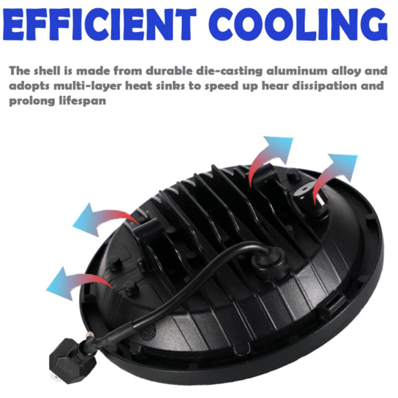 It is equipped with H4/H13 adapter; 7 inch led headlight it can be easily installed and used, which greatly saves time. Just connect the lamp to the factory headlamp wiring.