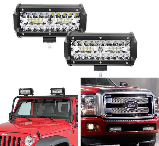 2 PCS 6.5 Inch Led Light Bars 48 PCS Led Quad Row Waterproof Spot Led Pod 6