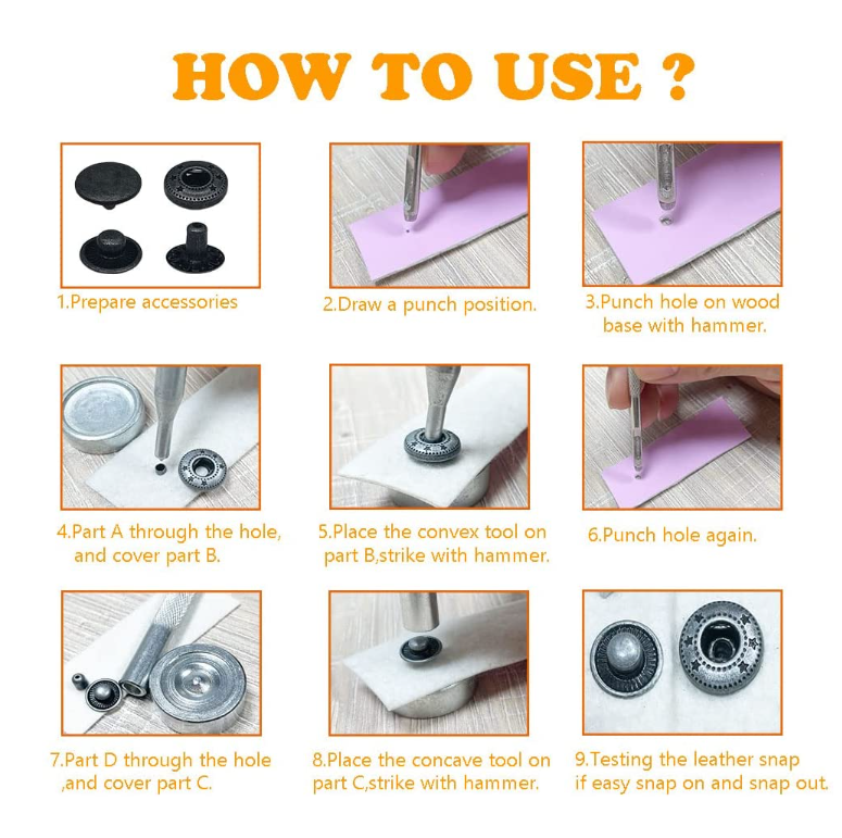 Leather snaps use for leather repair, jeans wear, Wallet, sewing replace fabric, Shirt, belts, handbags, clothing, any leather DIY craft